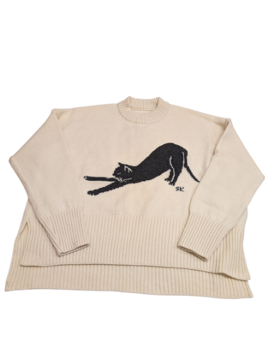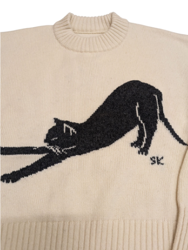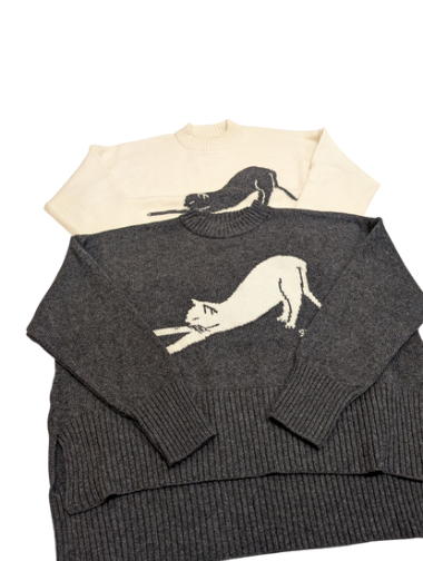○フロント部分の伸びをした猫がほっこりさせてくれるハイネックニット。