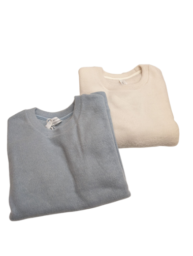 ○しっとりとした肌に吸い付くようなフリース生地のプルオーバー。
