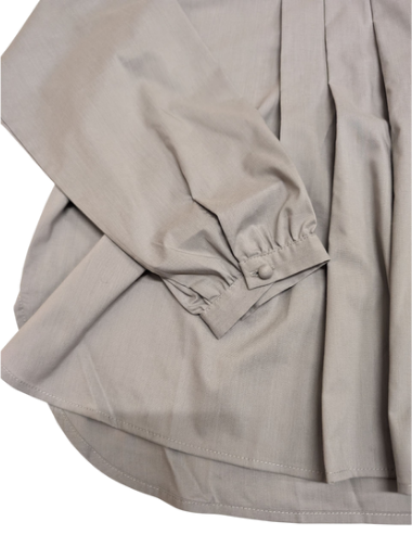 ○フロント部分にタックの入った長袖ブラウス。