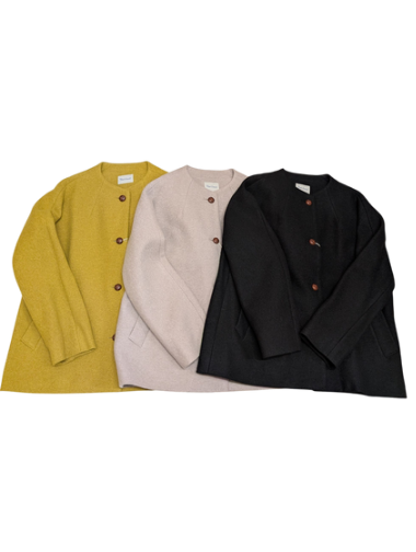 ○生地が圧縮してあるあったかなノーカラージャケット。