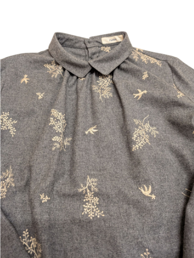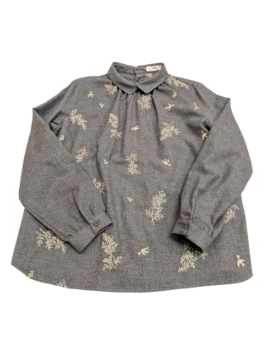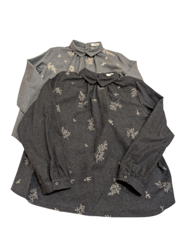 Parkes 杢ビエラ前身頃刺繍重ね衿ブラウス