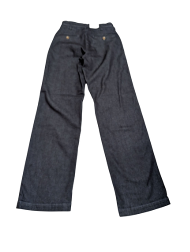 ○すっきりしたシルエットのデニムのトラウザーパンツ。